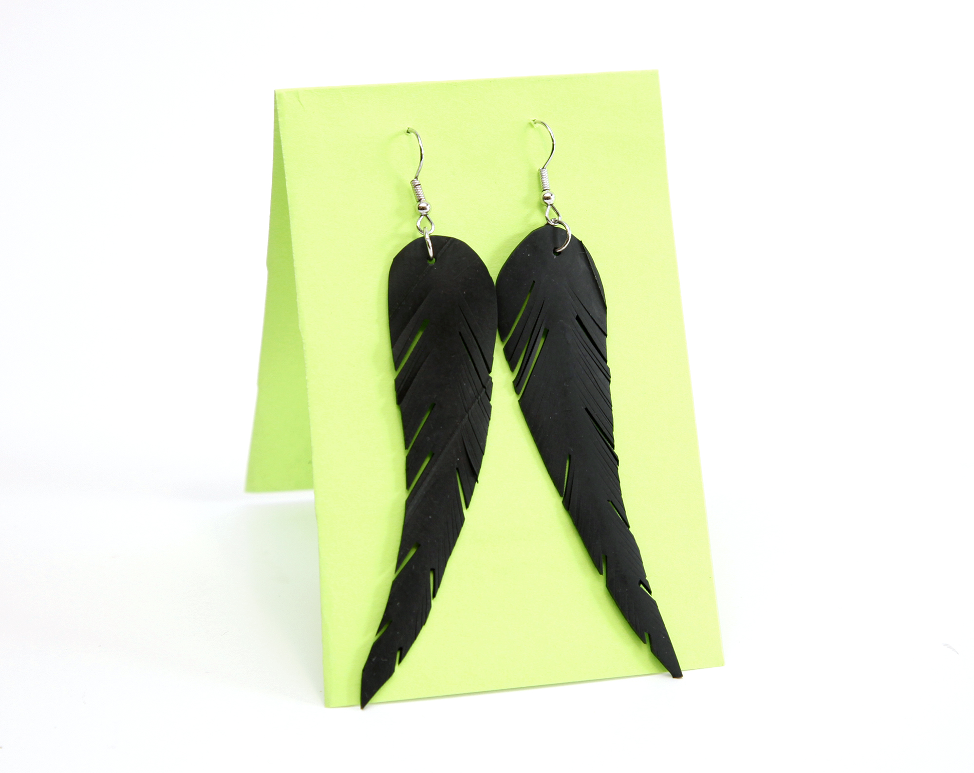 Feather Earrings Handcrafted from Recycled Inner Tube