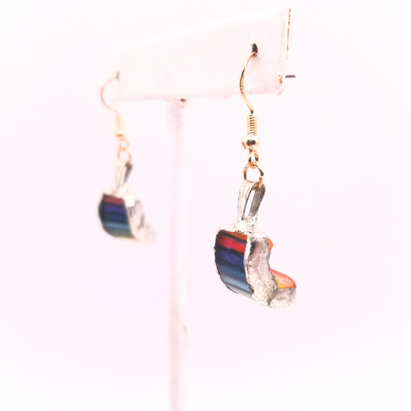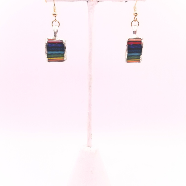 Unleash your inner light with these captivating dangle earrings. Each piece is a miniature prism of joy, featuring a striking pattern of rainbow stripes that catch and reflect the light. The vibrant colors are a celebration of individuality and cheerfulness, making these earrings a powerful statement of self-expression. Set in a polished, silver-toned frame, they offer a touch of modern elegance with a playful twist. These are more than just accessories; they are a wearable piece of art designed to brighten your day and inspire those around you.